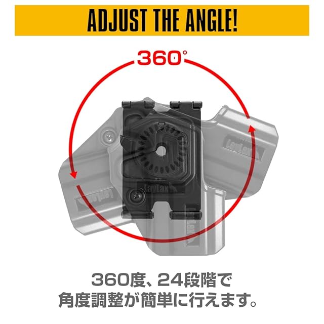 ●「CQCホルスター」・「ブレイクアウトホルスター」・「カイデックスホルスター」専用アタッチメント ●360度、24段階での角度調整が簡単に行えます。 ●ミリタリーグレードのハイテクポリマーを使用。高い堅牢性を実現しました。