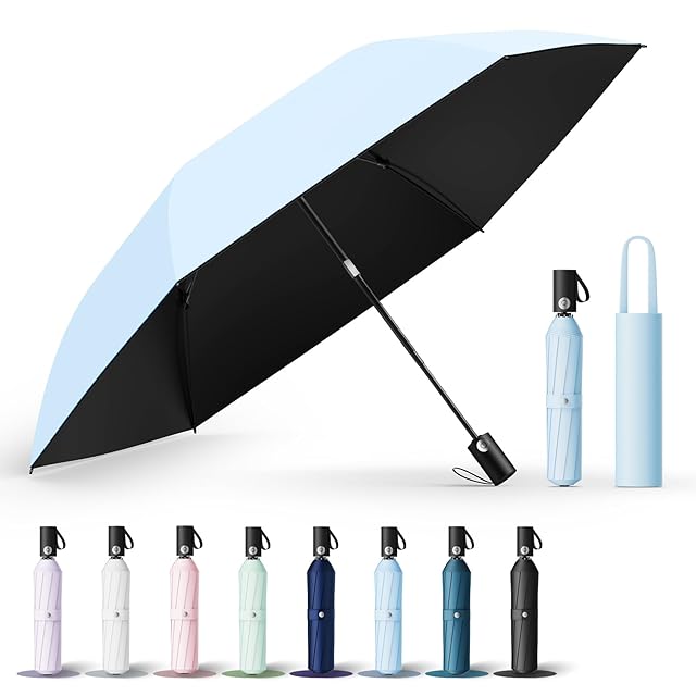 【JIS認証·現役皮膚科医監修】日傘 UVカット100遮光遮熱 折り畳み【業界初!改良型ワンタッチ自動開閉】UPEBおりたたみ傘 188g-230g超軽量 コンパクト 紫外線遮断 折りたたみ傘 耐風撥水 晴雨兼用 携帯便利 日傘メンズ/レディース/ガールズ/ガールズ/子供/大人兼用 収納ポーチ付き 母の日 父の日 お祝い 誕生日プレゼント2年品質 (水色, 90cm直径超軽量)