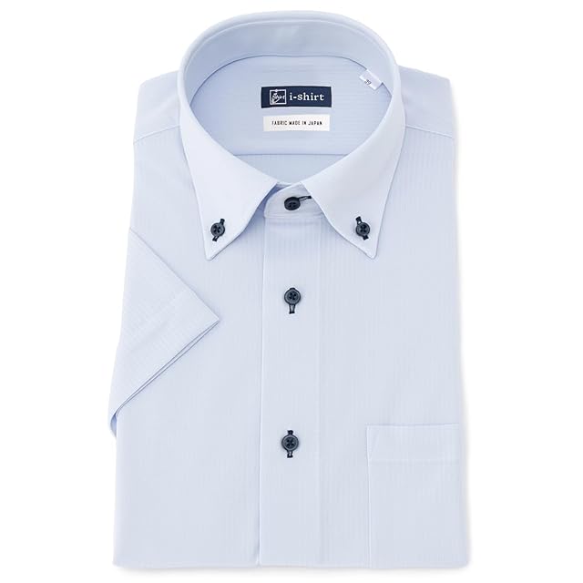 [アイシャツ] クラシック 完全ノーアイロン ストレッチ 超速乾 半袖 アイシャツ ワイシャツ メンズ サックス レギュラーフィット 半袖ボタンダウン 織柄 M16225002581