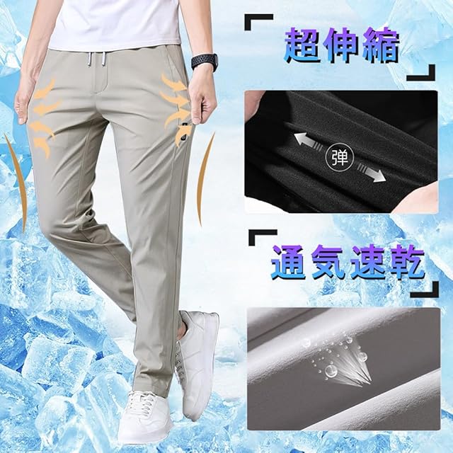 【接触冷感】冷感生地を採用して、肌と接触した瞬間に温度を下げるクール感があり、夏の常識を覆す!夏の蒸れに対応する男性用ジョガーパンツ。