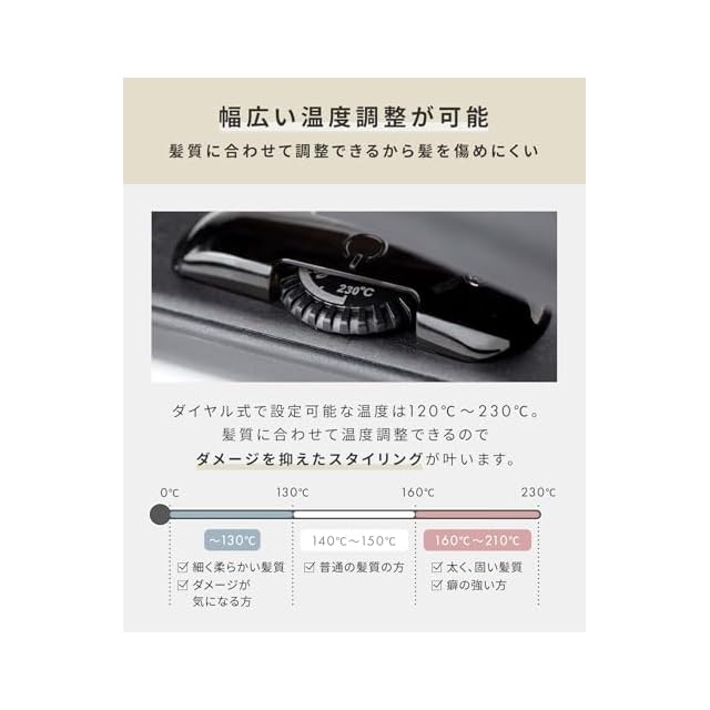 【ストレートをもっと簡単に】360度回転コード、さらに120℃-230℃で自由に温度設定可能