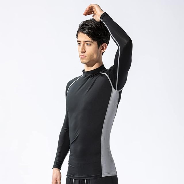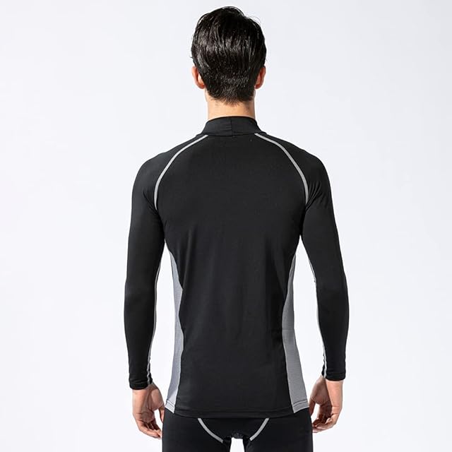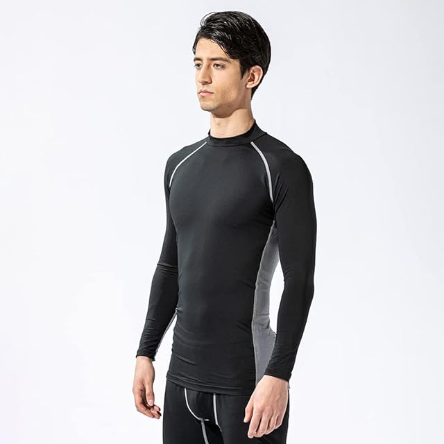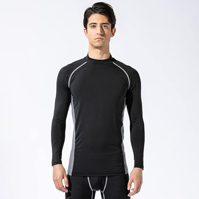 おたふく手袋 夏用インナー 長袖 ハイネック [接触冷感 吸汗速乾 消臭 コンプレッション UVカット メンズ] JW-625 ブラック×グレー LLサイズ