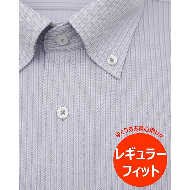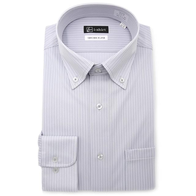 [アイシャツ] i-Shirt 完全ノーアイロン ストレッチ 超速乾 アイシャツ ワイシャツ メンズ グレー ストライプ柄 ボタンダウン レギュラーフィット 長袖 M15125000212 首回り41cm×裄丈84cm