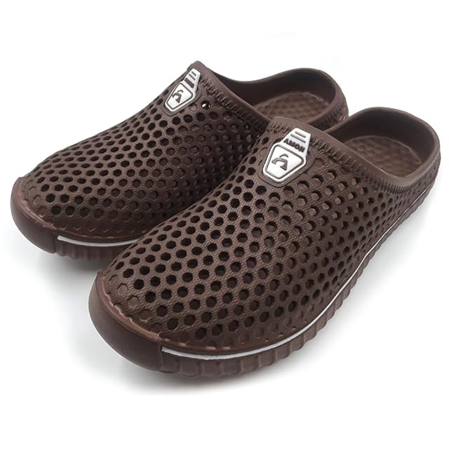 [アモジ] サンダル メンズ スリッパ 室内 レディース ルームシューズ めんず クロッグサンダル れでぃーす サボ ビジネス オフィスサンダル ビーチ ベランダ 室内履き さんだる すりっぱ 夏 夏用 通気 部屋 軽量 おしゃれ クッション 大きいサイズ 幅広 内履き 外履き 防水 事務所 屋外 玄関 ゴム つっかけ スリッポン AM1702 ブラウン 31.0cm