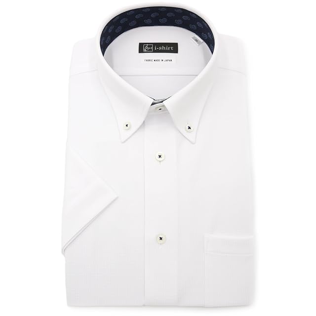 商品名:[アイシャツ] i-Shirt 完全ノーアイロン ストレッチ 超速乾 アイシャツ ワイシャツ メンズ ホワイト 千鳥 ボタンダウン レギュラーフィット 半袖 M16225003101 首回り43cm