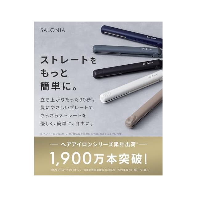 SALONIA サロニア ストレートアイロン ヘアアイロン 15mm 耐熱ポーチ付 海外対応 SL-004S ブラック