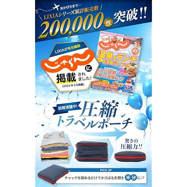 ✅【ファスナーを閉めるだけで簡単圧縮】 かさばる衣類があっという間にスッキリ!衣類を畳んで納め、チャックを閉めるだけで約50%圧縮できるバッグです。是非LIXIAの圧縮バッグで荷物に囚われない旅行をお楽しみください!