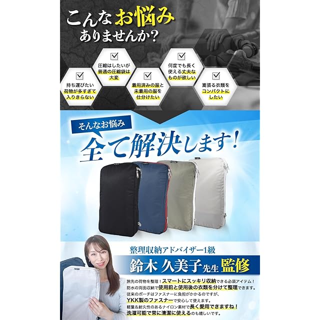 ✅【こんなシーンで活躍】 旅行に。 荷物を最小限に抑えたい出張などに。 着替えを用意しておきたいキャンプに。 クローゼットで使用頻度の低い衣類の収納にも。ちょっとしたお出かけにも必須の一品。