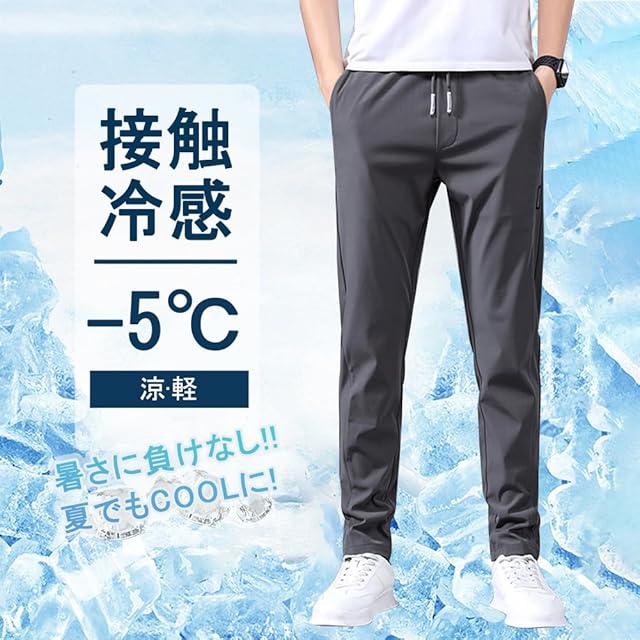 【接触冷感】冷感生地を採用して、肌と接触した瞬間に温度を下げるクール感があり、夏の常識を覆す!夏の蒸れに対応する男性用ジョガーパンツ。