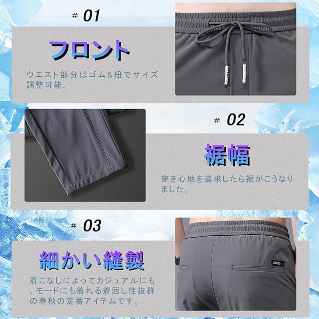 商品名:ズボン メンズ パンツ 接触冷感 夏服 ジョガーパンツ 涼しい 速乾 超ストレッチ スウェットパンツ 薄手 軽量 レギパン 美脚 イージーパンツ 部屋着 ボトムス アイスシルクパンツ 春 夏