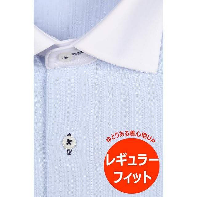 [アイシャツ] i-Shirt 完全ノーアイロン ストレッチ 超速乾 レギュラーフィット 長袖 アイシャツ ワイシャツ メンズ ブルー 新レギュラーフィット 長袖セミワイド ストライプ M15123001484 首回り43cm×裄丈86cm