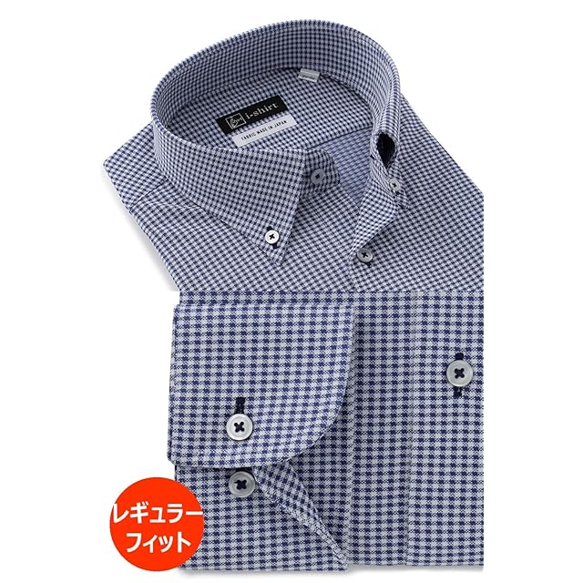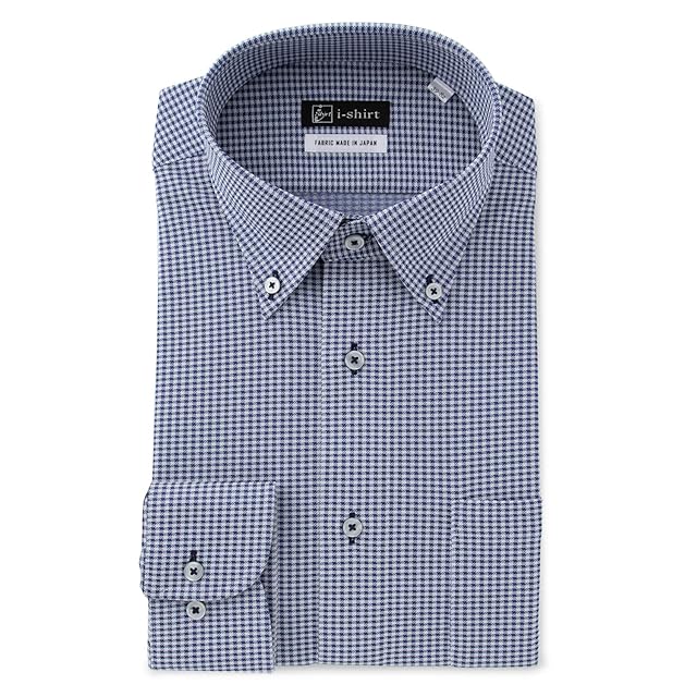 [アイシャツ] i-Shirt 完全ノーアイロン ストレッチ 超速乾 レギュラーフィット 長袖 アイシャツ ワイシャツ メンズ ネービー 新レギュラーフィット 長袖ボタンダウン チェック M15121003388 首回り39cm×裄丈80cm