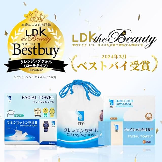 ITO フェイシャルタオル 60枚入×4個セット 【使用方法】 ◎洗顔後の水を拭き取ります。 ◎肌のお手入れの場合は、お湯やお水を含ませ、絞ってご使用ください。 ◎化粧落としの場合は、メイク落としを含ませて優しく拭き取ってください。 安全警告 ◎お肌に合わない場合は、使用しないでください。 ◎直射日光の当たる場所や多湿なところでの保管は避けてください。 ◎お子様の手の届かないところで保管してください。 ◎本商品は水に溶けないため、トイレには捨てないでください。
