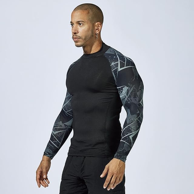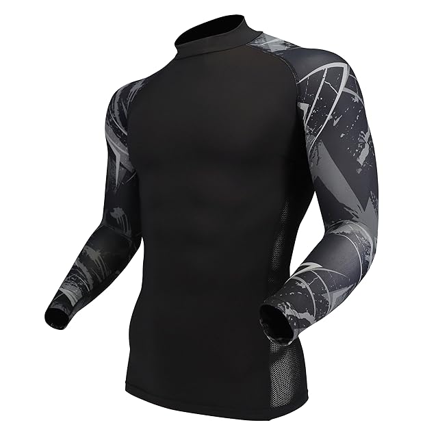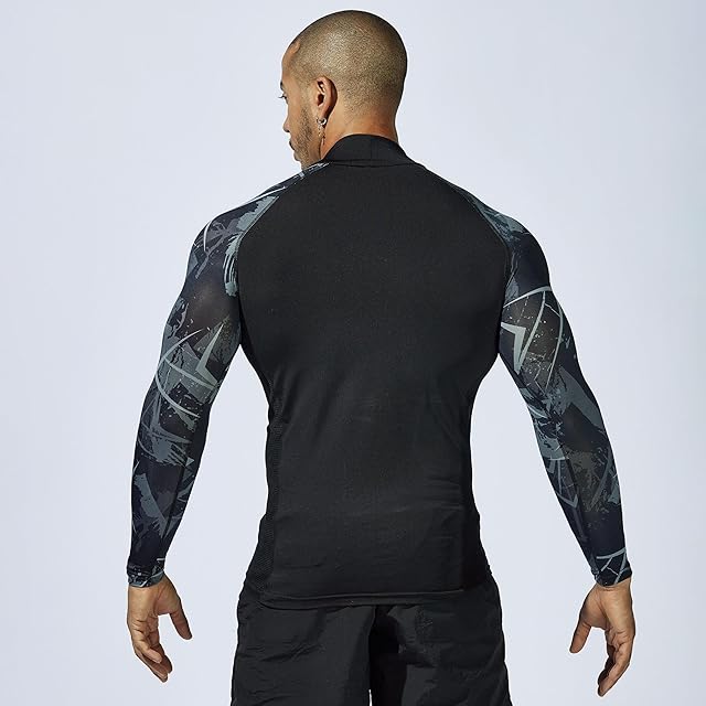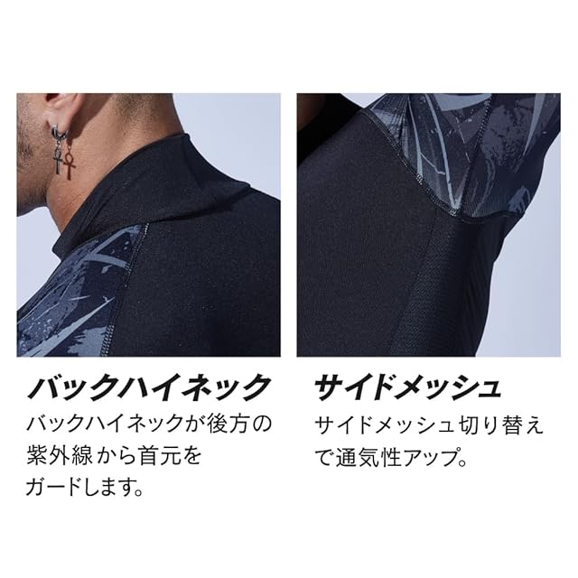 商品名:おたふく手袋 夏用インナー 長袖ハイネック[接触冷感 吸汗速乾 スピード消臭 UVカット コンプレッション メンズ]JW-625 カモフラxブラック LLサイズ