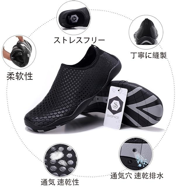 Sixspace マリンシューズ ウォーターシューズ 水陸両用 アクアシューズ シュノーケリング ビーチシューズ 軽量 通気 ヨガ サーフィン 男女兼用 ブラック 23.5CM