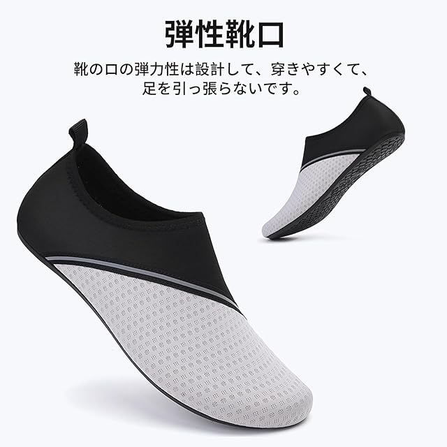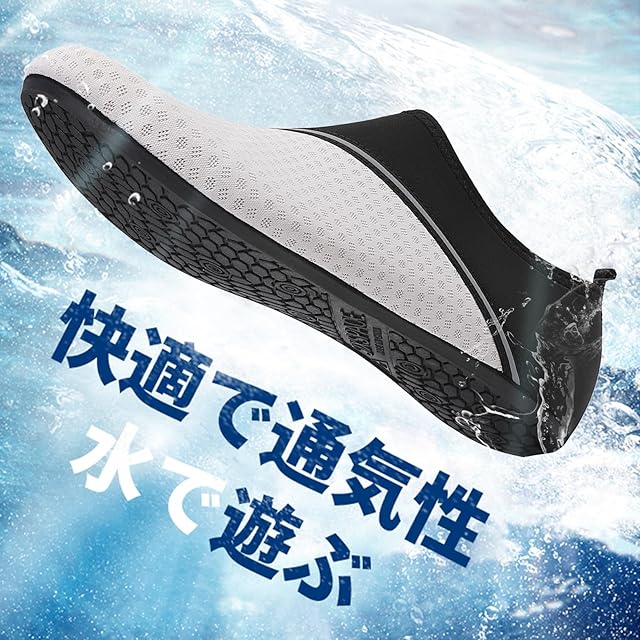 履き心地がいい:素足の感覚をそのままで! 超軽量マルチ機能性スキンシューズ。大人から子供までのサイズが揃えおるマリンシューズ。アッパーにはネオプレーンを採用することで、優れた伸縮性と排水性と通気性が期待できる。また、ソックスのような柔軟性で、履いても素足みたいな履き心地。弾力・伸縮性素材で足によくフィットし履き心地抜群。