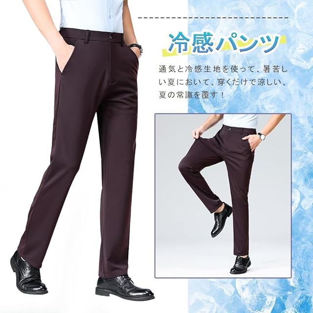 冷感パンツ メンズ スラックス アイスシルクパンツ ストレッチ 接触冷感 薄手 涼しい 大きいサイズ 夏 春 秋