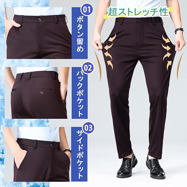 [HMT] スラックス メンズ ズボン 夏服 冷感パンツ スーツパンツ 接触冷感 薄手 ロングパンツ メンズ ビジネス 仕事着 パンツ ノータック ストレッチ ウォッシャブル スリム 美脚 大きいサイズ 春 夏