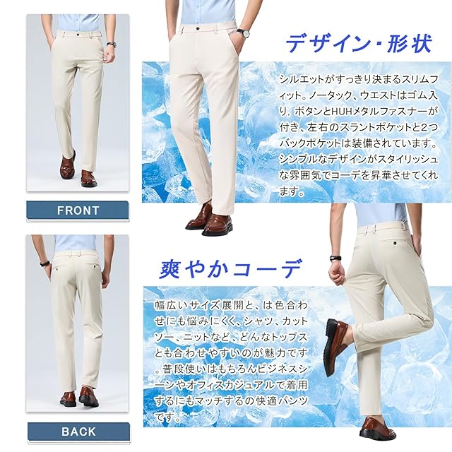 商品名:[HMT] スラックス メンズ ズボン 夏服 冷感パンツ スーツパンツ 接触冷感 薄手 ロングパンツ メンズ ビジネス 仕事着 パンツ ノータック ストレッチ ウォッシャブル スリム 美脚 大きいサイズ 春 夏