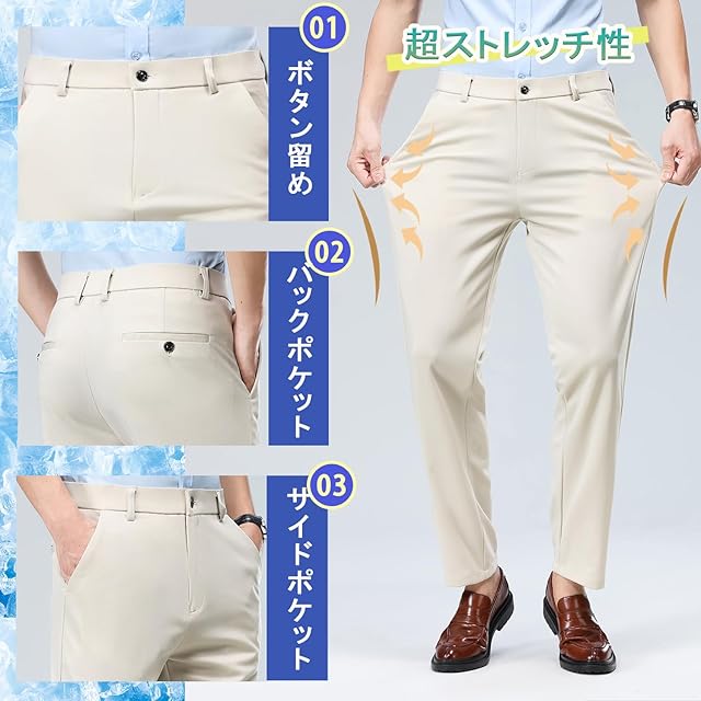 冷感パンツ メンズ スラックス アイスシルクパンツ ストレッチ 接触冷感 薄手 涼しい 大きいサイズ 夏 春 秋