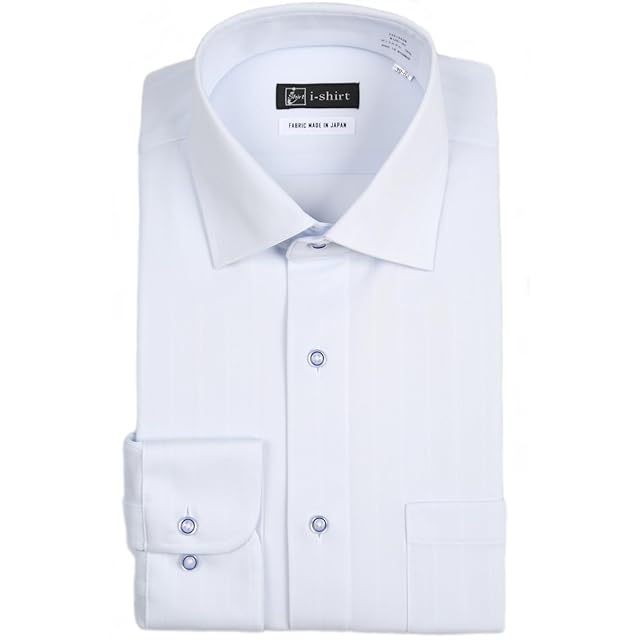 [アイシャツ] i-Shirt 完全ノーアイロン ストレッチ 超速乾 レギュラーフィット 長袖 アイシャツ ワイシャツ メンズ サックス 新レギュラーフィット 長袖セミワイド ストライプ M15123001381 首回り43cm×裄丈84cm