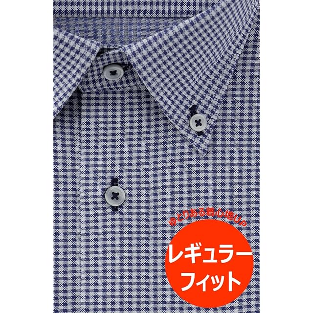 [アイシャツ] i-Shirt 完全ノーアイロン ストレッチ 超速乾 レギュラーフィット 長袖 アイシャツ ワイシャツ メンズ ネービー 新レギュラーフィット 長袖ボタンダウン チェック M15121003388 首回り45cm×裄丈84cm