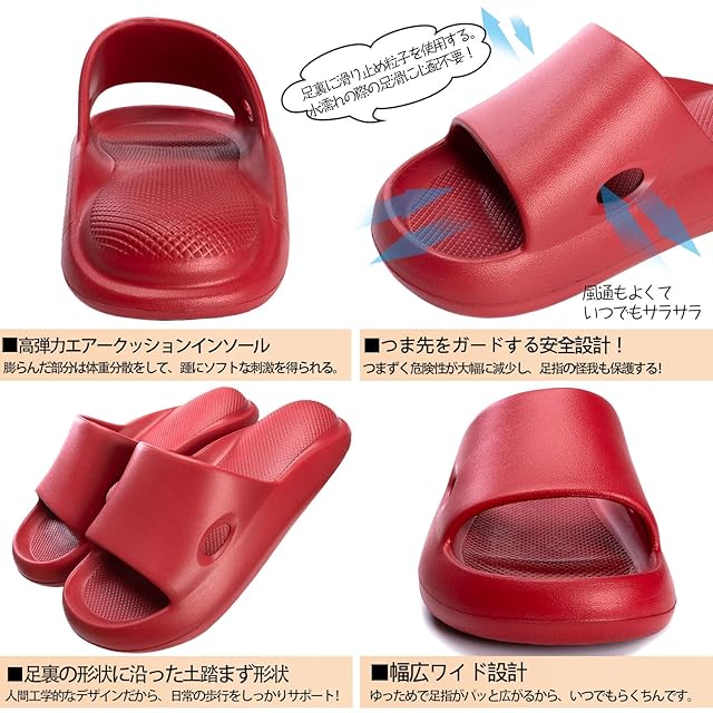 [Alvisto] 理学療法士推奨 スリッパ 室内 サンダル 4cm超厚底 エアースリッパ ルームシューズ レディース メンズ ベランダ バス トイレ 超軽量 静音防滑 柔らか 抗菌防臭 EVA air slippers 『新年限定』レッド 22.5-23.5cm
