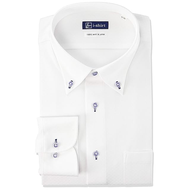 [アイシャツ] i-Shirt 完全ノーアイロン ストレッチ 超速乾 レギュラーフィット 長袖 アイシャツ ワイシャツ メンズ ホワイト 新レギュラーフィット 長袖ボタンダウン ドビーチェック M15121001401 M78(首回り39cm×裄丈78cm)