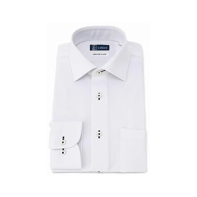 [アイシャツ] i-Shirt 完全ノーアイロン ストレッチ 超速乾 レギュラーフィット 長袖 アイシャツ ワイシャツ メンズ ホワイト 新レギュラーフィット 長袖セミワイドカラー ミニチェック M15120001201 M82(首回り39cm×裄丈82cm)