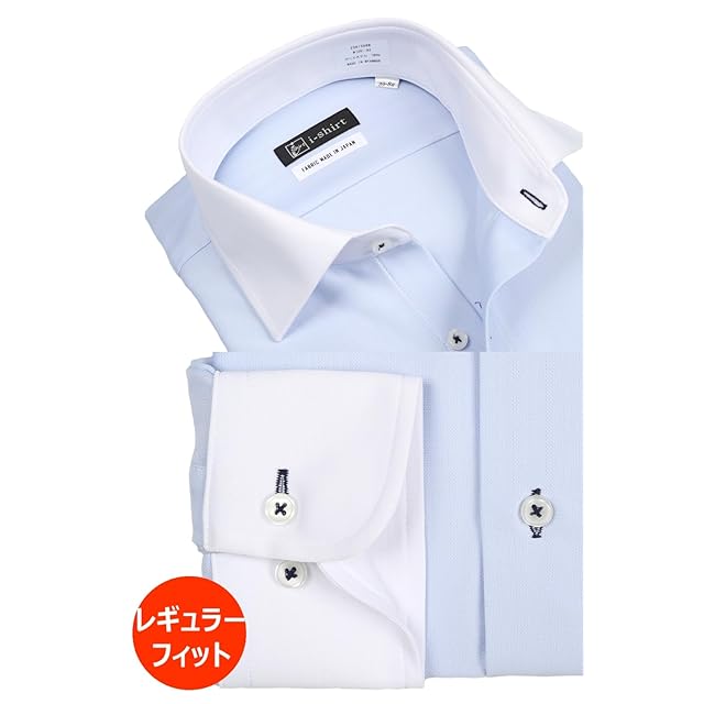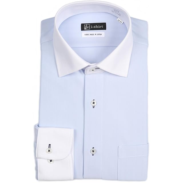 [アイシャツ] i-Shirt 完全ノーアイロン ストレッチ 超速乾 レギュラーフィット 長袖 アイシャツ ワイシャツ メンズ ブルー 新レギュラーフィット 長袖セミワイド ストライプ M15123001484 首回り41cm×裄丈84cm