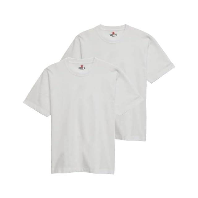 [ヘインズ] 半袖 丸首 2P ビーフィー Tシャツ BEEFY-T 2枚組 綿100% 肉厚生地 丸胴仕様 タグレス仕様 ヘビーウェイトT H5180-2 メンズ ホワイト M