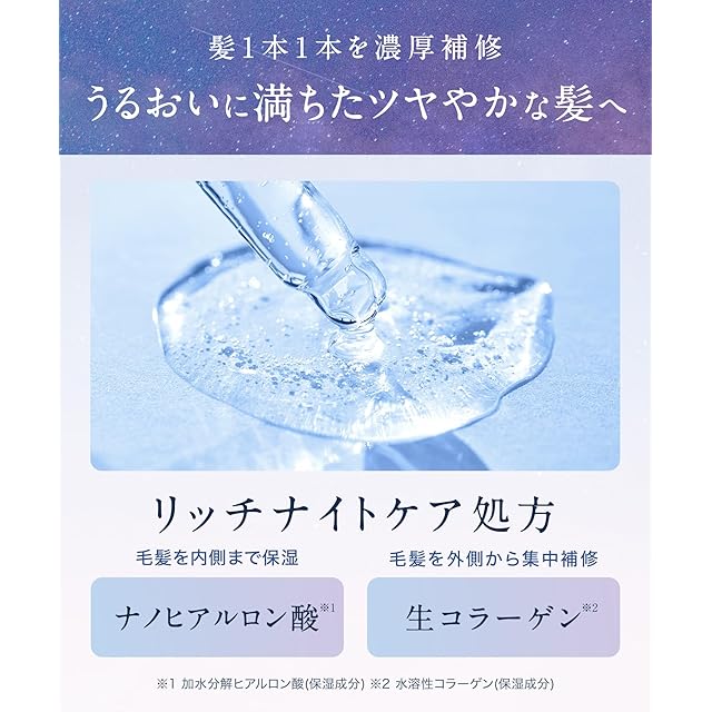 【リッチナイトケア処方】高保湿の生コラーゲンでコーティングし、 毛髪の外側を集中補修