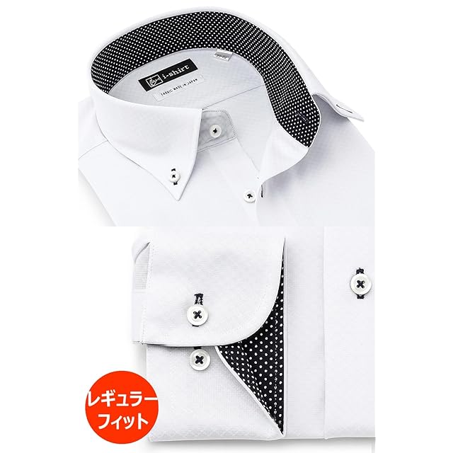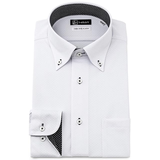[アイシャツ] i-Shirt 完全ノーアイロン ストレッチ 超速乾 レギュラーフィット 長袖 アイシャツ ワイシャツ メンズ ホワイト 新レギュラーフィット 長袖ボタンダウン ロンビック(ひし形チェック) M15120004901 M78(首回り39cm×裄丈78cm)