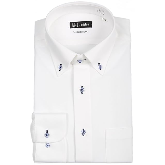 [アイシャツ] i-Shirt 完全ノーアイロン ストレッチ 超速乾 レギュラーフィット 長袖 アイシャツ ワイシャツ メンズ ホワイト 新レギュラーフィット 長袖ボタンダウン ダイヤ柄 M15123000901 首回り43cm×裄丈84cm