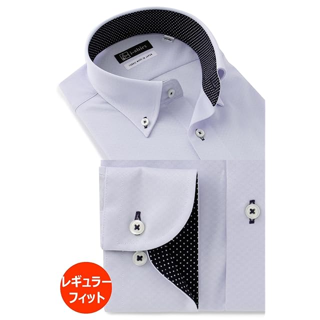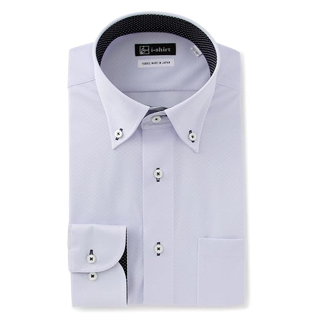 [アイシャツ] i-Shirt 完全ノーアイロン ストレッチ 超速乾 レギュラーフィット 長袖 アイシャツ ワイシャツ メンズ サックス 新レギュラーフィット 長袖ボタンダウン ロンビック(ひし形チェック) M15121003081 首回り45cm×裄丈82cm