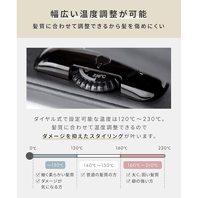 【ストレートをもっと簡単に】360度回転コード、さらに120℃-230℃で自由に温度設定可能