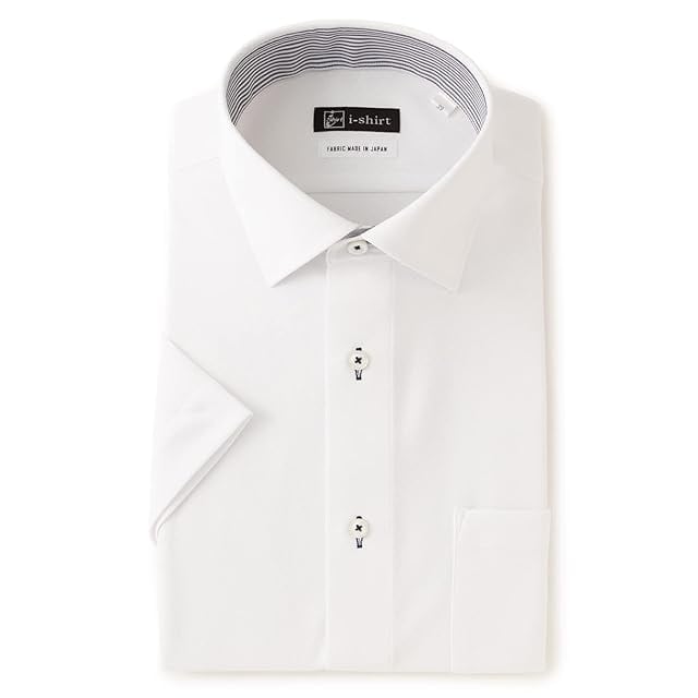 [アイシャツ] i-Shirt 完全ノーアイロン ストレッチ 超速乾 半袖 アイシャツ ワイシャツ メンズ ホワイト レギュラーフィット 半袖ワイドカラー M16222001301 首回り47cm