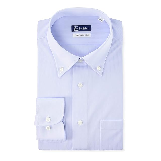 [アイシャツ] i-Shirt 完全ノーアイロン ストレッチ 超速乾 レギュラーフィット 長袖 アイシャツ ワイシャツ メンズ サックス 新レギュラーフィット 長袖ボタンダウン ドビーストライプ M15121001181 4L88(首回り47cm×裄丈88cm)