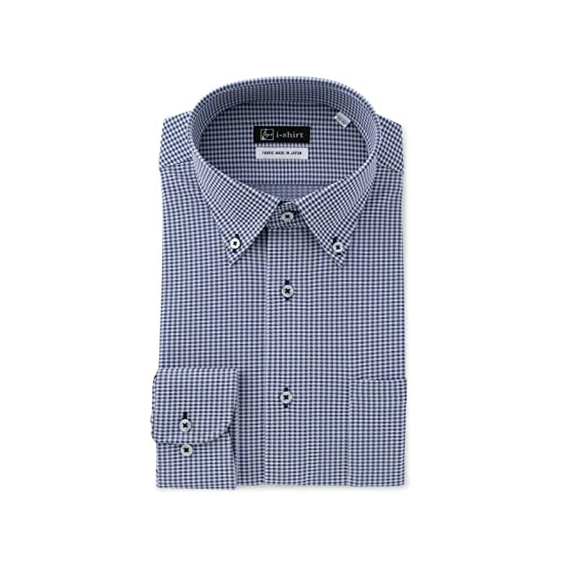 [アイシャツ] i-Shirt 完全ノーアイロン ストレッチ 超速乾 レギュラーフィット 長袖 アイシャツ ワイシャツ メンズ ネービー 新レギュラーフィット 長袖ボタンダウン チェック M15121003388 首回り41cm×裄丈82cm