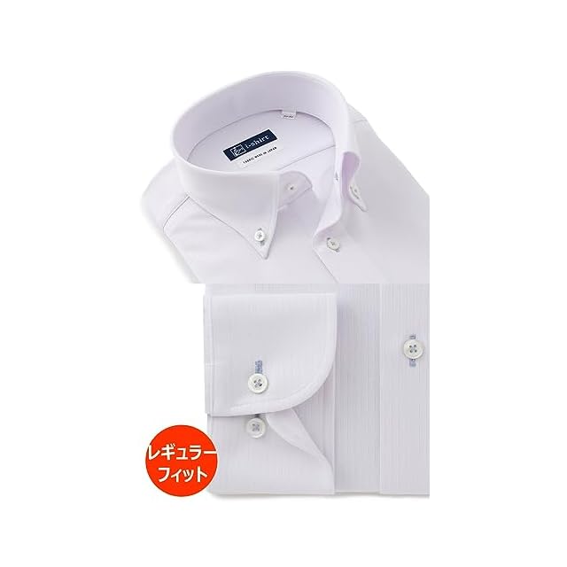 [アイシャツ] i-Shirt 完全ノーアイロン ストレッチ 超速乾 レギュラーフィット 長袖 アイシャツ ワイシャツ メンズ ホワイト 新レギュラーフィット 長袖ボタンダウン ストライプ M15121003701 首回り37cm×裄丈80cm