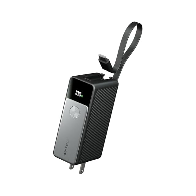 MATECH(マテック)® MATECH モバイルバッテリー コンセント一体型(45W出力, 5000mAh)【GaNUltra採用/LEDディスプレイ搭載/USB-Cケーブル一体型/コンセント一体型/折りたたみ式プラグ】iPhone MacBook Android その他機器対応 (PowerFusion 5000 45W) (メタリックブラック)