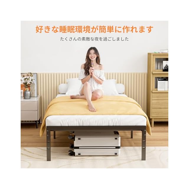 頑丈な耐久性: メタルベッドフレームは高品質な金属フレームを使用しており、優れた耐久性と安定感を実現しています。長期間使用してもたわみやきしみがなく、安心してお使いいただけます。