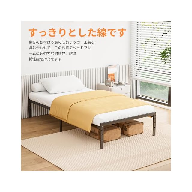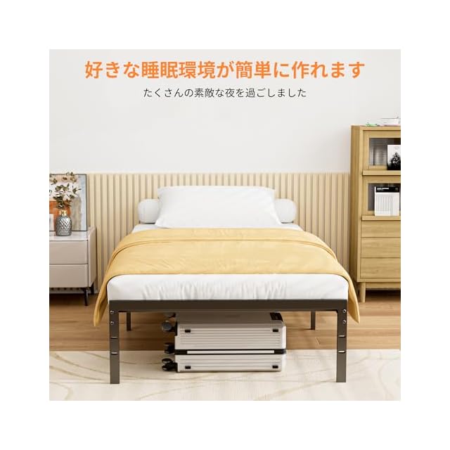 ベッド下収納: このベッドシングルは、下に十分な収納スペースを備えており、洋服や寝具はもちろん、靴や雑貨も楽に収納できます。