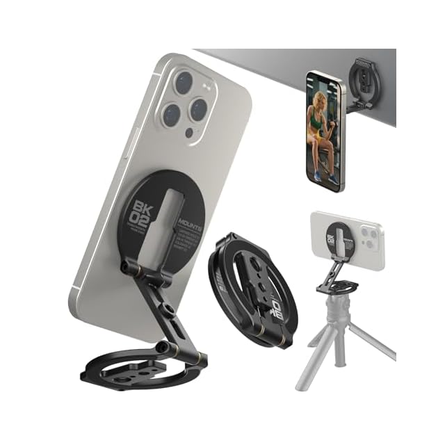 MOSENVKA magsafe対応 スマホスタンド 両面マグネット 超强磁力 マグセーフ 携帯リング スマホホルダ アルミ合金 超薄型折りたたみ式 角度自由 アルミ合金 車載ホルダー マルチスタンド 1/4" ネジ三脚マウント iPhone 16 15 14 13 12 Pro Max Plusに対応 ジム用スマホホルダー (BK2)