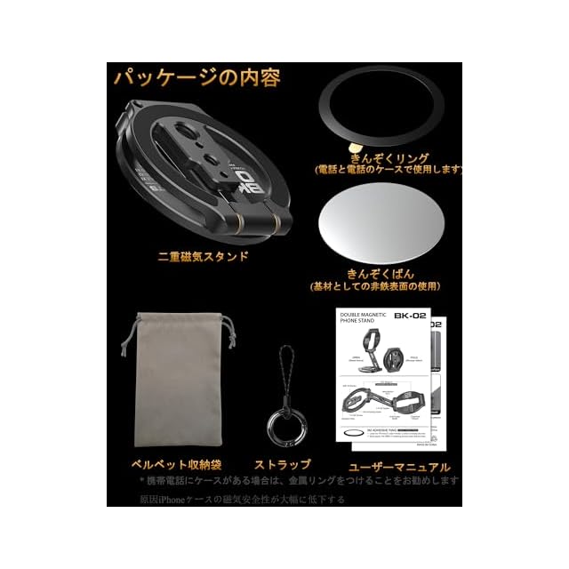 【すべての携帯電話に適用】マグセー磁気デザインを採用して、iPhone 16/15/14/13シリーズ以降のバージョンとMag Safeケースに対応できます。Mag-Safe非対応ケースとスマホを使用する場合、ケースの外側に金属製のリングを貼り付けることも可能であります。