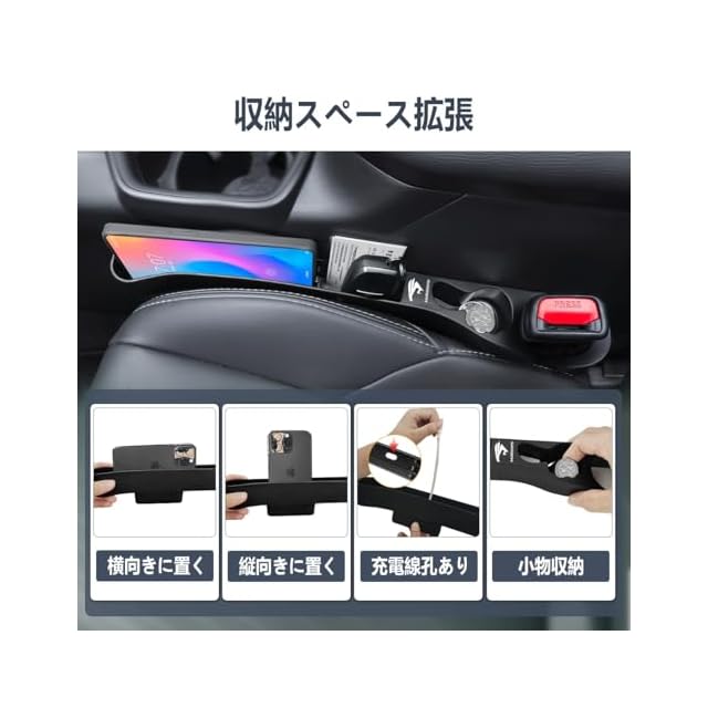 【アップグレード版:小物の落下防止&分類収納&充電線孔あり】アップグレード版として、市場の他製品と比較してさらに使いやすさを向上。従来の隙間クッションは隙間を埋めるだけでしたが、ハリアー 隙間クッションは収納スペースを拡大し、スマートフォンや財布、鍵、コイン、駐車券、ポイントカードなどをスッキリ整理できるようになりました。また、カード仕切り設計を採用し、カード類も分けて収納可能。底部は深めに作られており、スマートフォンや財布を縦横自在に収納できます。さらに、充電線孔を設計し、充電ケーブルをスムーズに通せる設計で、運転中もスマートフォンを快適に充電できます。コンソール 隙間収納 落下防止としても最適なデザインです。
