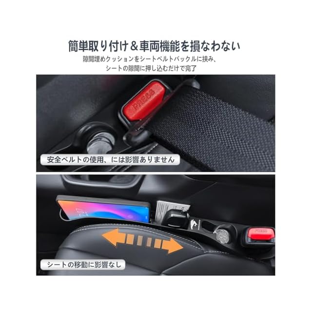 【簡単取り付け&車両機能を損なわない】取り付けは簡単。ハリアー 隙間埋めクッションをシートベルトバックルに挟み、シートの隙間に押し込むだけで完了。HARRIER隙間埋めクッションは独自の固定デザインにより、シートと一体化し、シートの前後移動やシートベルトの使用にも影響を与えません。さらに、ハリアー隙間埋めクッションは防水・耐湿性にも優れ、汚れた際は湿った布で拭くだけでお手入れ完了。ハリアーサイド隙間埋めクッションとして長期間快適に使用できます。