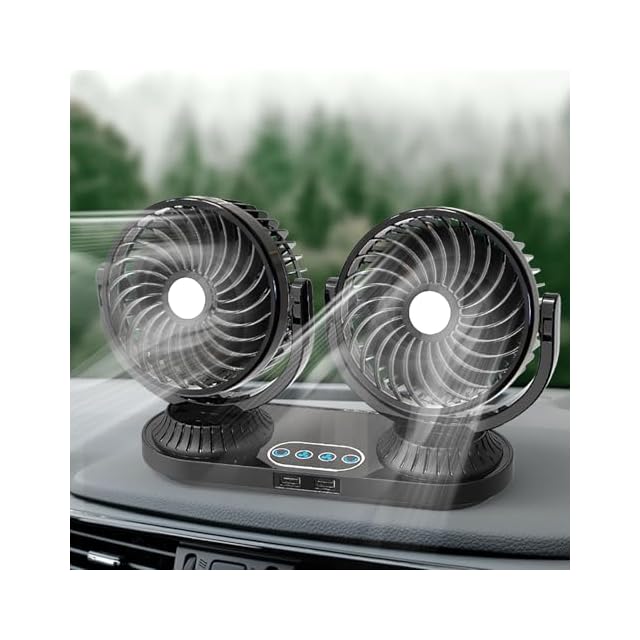 この自動扇風機はデュアルファンヘッドで設計され、運転席と助手席を同時に冷却でき、シングルファンより実用的です。 ファンベースにはタッチスクリーンコントロールパネルと独立制御のための2つの独立した電源スイッチがあります。 それぞれのファンヘッドの風速とスイッチを別々にコントロールできます。