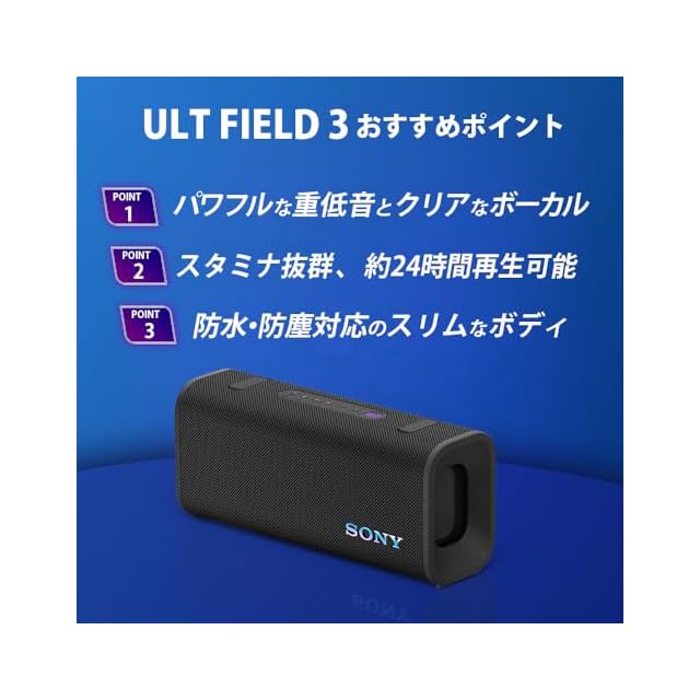 ソニー(SONY) ULT FIELD 3 Bluetoothスピーカー パワフル重低音 クリアなボーカル ロングバッテリー24時間 ショルダーストラップ 防水 防塵 SRS-ULT30 BC ブラック