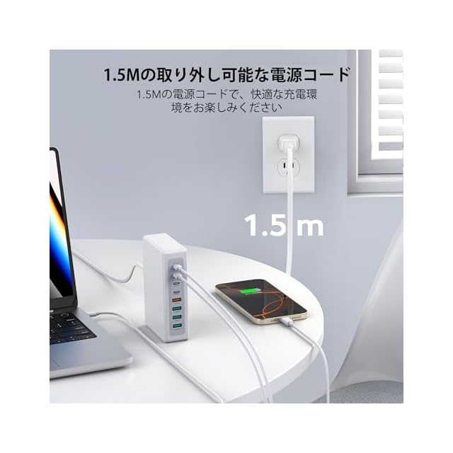 ⚡【PD100W 急速充電器】USB C充電器は、自宅、オフィス、旅行先で複数のデバイスを充電できます。サイズが小さく、スペースを 50% 節約し、ポケット、ハンドバッグ、トラベルケースに簡単に収まります。 1.5M AC延長コードを備えた設計により、距離制限を気にせずに好きなだけ充電できます。